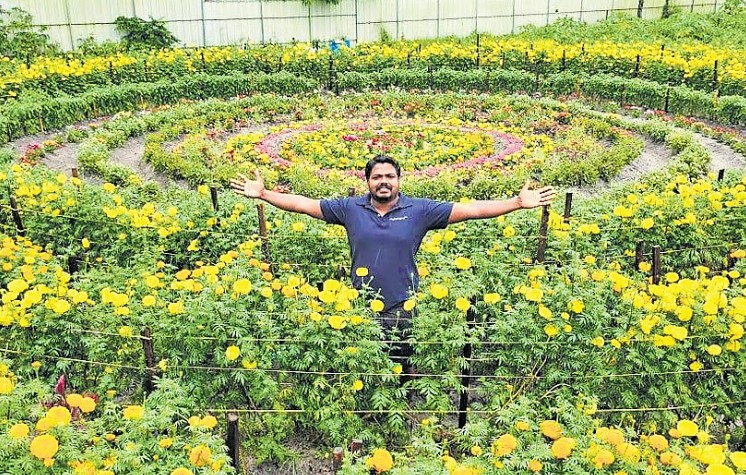 ഓണത്തെ വരവേറ്റ് ‘ജീവനുള്ള പൂക്കളം’ ഒരുക്കി ആലപ്പുഴയിലെ കർഷകൻ,