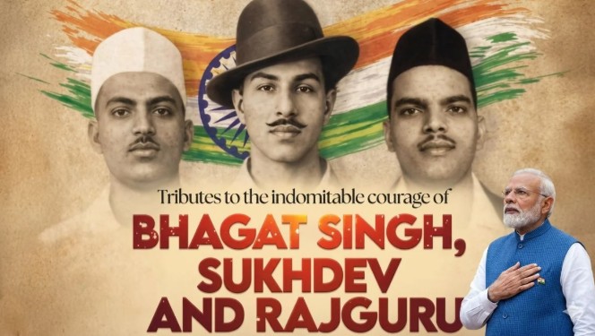 ഭഗത് സിംഗ്, രാജ്ഗുരു, സുഖ്ദേവ് എന്നിവർക്ക് ആദരാഞ്ജലികൾ അർപ്പിച്ച് പ്രധാനമന്ത്രി മോദി.