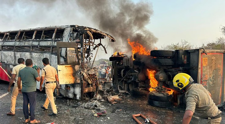 കൂട്ടിയിടിയുടെ ആഘാതത്തിൽ ബസ്സിന്റെ ഡീസൽ ടാങ്ക് പൊട്ടിത്തെറിച്ചതാണ് വൻ തീപിടുത്തത്തിന് കാരണമായത്. യാത്രക്കാർ ഉറങ്ങിക്കിടക്കുന്ന സമയത്തായിരുന്നു അപകടം നടന്നത്. തീ അതിവേഗം പടർന്നതിനാൽ പലർക്കും പുറത്തിറങ്ങാൻ കഴിഞ്ഞില്ല. മരിച്ചവരിൽ പലരുടെയും മൃതദേഹങ്ങൾ തിരിച്ചറിയാൻ കഴിയാത്ത വിധം കത്തിക്കരിഞ്ഞ നിലയിലാണ്.