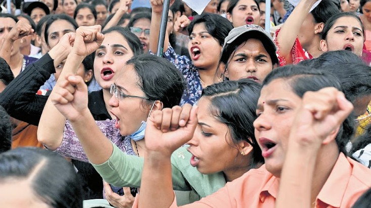 കോവിഡ് മഹാമാരിക്ക് ശേഷമുള്ള ഏറ്റവും വലിയ പണിമുടക്കുമായി കേരളത്തിലെ സ്വകാര്യ ആശുപത്രി നേഴ്സുമാർ രംഗത്ത്. മിനിമം പ്രതിമാസ ശമ്പളം 40,000 രൂപയാക്കുക, ജോലിസ്ഥലത്തെ ചൂഷണം അവസാനിപ്പിക്കുക തുടങ്ങിയ ആവശ്യങ്ങൾ ഉന്നയിച്ച് യുണൈറ്റഡ് നേഴ്സസ് അസോസിയേഷന്റെ (UNA) നേതൃത്വത്തിൽ തിങ്കളാഴ്ച നടത്തിയ സമരം സംസ്ഥാനത്തെ ആരോഗ്യമേഖലയെ സ്തംഭിപ്പിച്ചു. ചില ആശുപത്രികൾ ശമ്പളം 8,000 മുതൽ 12,000 രൂപ വരെ വർദ്ധിപ്പിക്കാൻ തയ്യാറായെങ്കിലും ഭൂരിഭാഗം മാനേജ്മെന്റുകളും വിട്ടുവീഴ്ചയ്ക്ക് തയ്യാറായിട്ടില്ല. സർക്കാർ പുറത്തിറക്കിയ ശമ്പള പരിഷ്കരണ കരട് വിജ്ഞാപനത്തിൽ നേഴ്സുമാരും മാനേജ്മെന്റുകളും ഒരുപോലെ അതൃപ്തി രേഖപ്പെടുത്തിയതോടെ സമരം കൂടുതൽ ശക്തമാകാനാണ് സാധ്യത. സർക്കാർ മേഖലയിലെ നേഴ്സുമാർക്ക് 60,000 രൂപയോളം ലഭിക്കുമ്പോൾ സ്വകാര്യ മേഖലയിൽ പലർക്കും 20,000 രൂപയിൽ താഴെയാണ് ലഭിക്കുന്നതെന്നും വർദ്ധിച്ചുവരുന്ന ജീവിതച്ചെലവ് കണക്കിലെടുത്ത് ശമ്പളം ഉടൻ വർദ്ധിപ്പിക്കണമെന്നും യുഎൻഎ നാഷണൽ പ്രസിഡന്റ് ജാസ്മിൻഷാ ആവശ്യപ്പെട്ടു. (TNIE & PTI)