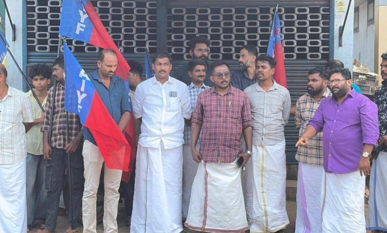 കായംകുളത്ത് മാമ്പഴ വിപണന കേന്ദ്രത്തിലെ തീപിടുത്തം: കാർബൈഡ് ലോഷൻ കാരണമായെന്ന് ആക്ഷേപം; AIYF പ്രതിഷേധം.